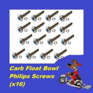 BZP Zinc Carb Float Bowl Screw Kit (x16) - Kawasaki KH100