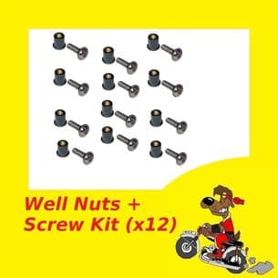 Handy pack of 12 well nuts and matching A2 button allen screws. Great for fairing and screens.